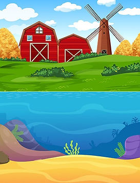 Діти кожну тварину прикріпляють на те поле, де ця тварина живе. Дію озвучують англійською мовою.